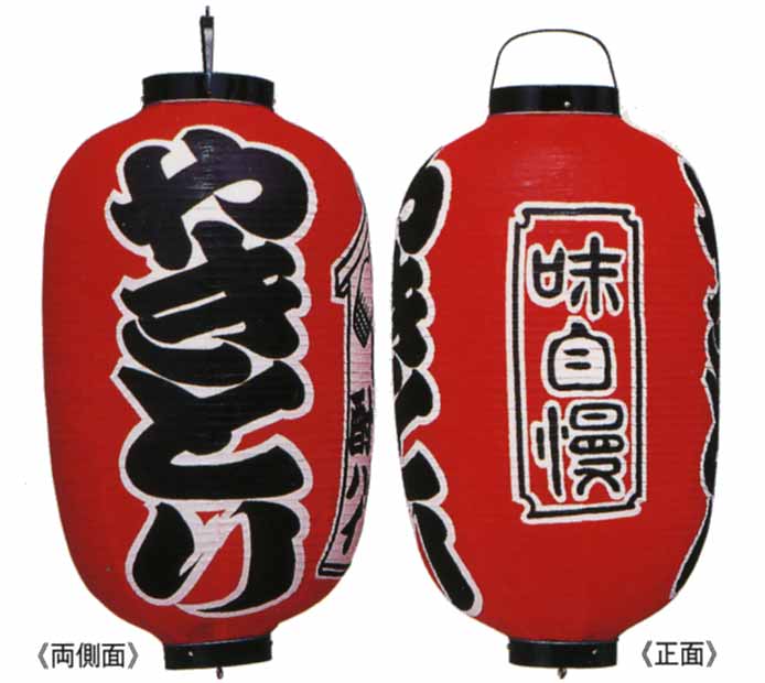 ※この他にも、弓張提灯、無地九長、尺丸提灯 御祭礼提灯 和紙提灯などいろいろあり、名入れ、マーク、家紋、デザイン、写真など出来ますのでお気軽にご相談下さい。又、載っていない提灯も格安でご提供できますのでお電話下さい。 |