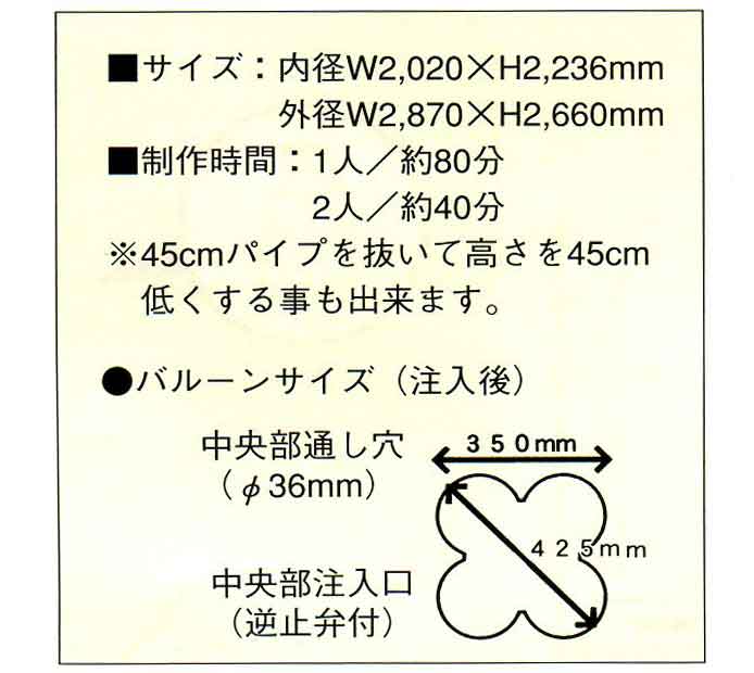 400リットル入り6,000円(税込6,480円) F-011 バルーンタイム中 230リットル入り4,500円(税込4,860円) |