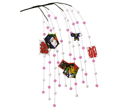 舞玉シダレ干支(卯)付小枝 ポリエチレン・PVC全長140cmL